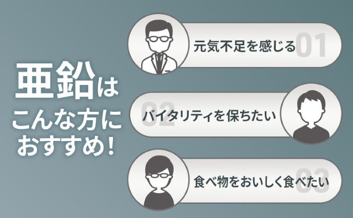 ※亜鉛の摂り過ぎは、銅の吸収を阻害するおそれがありますので、過剰摂取にならないよう注意してください。