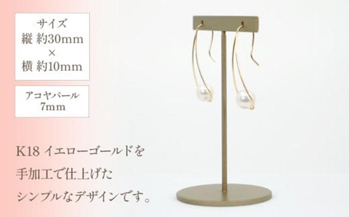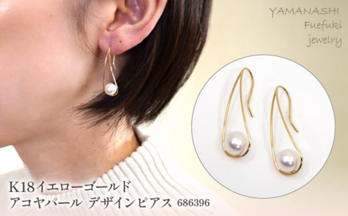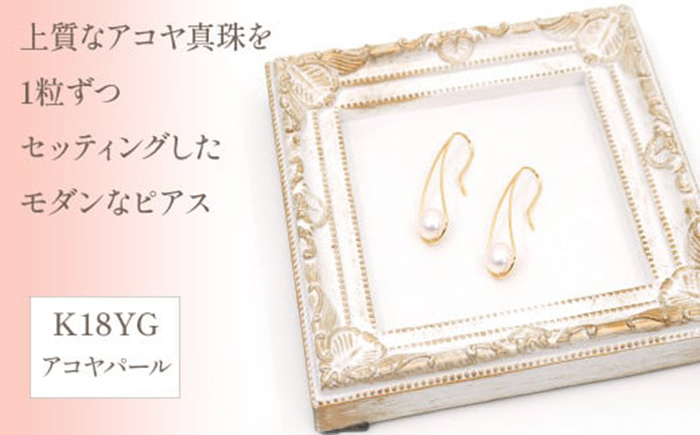 K18 イエローゴールド アコヤパール デザインピアス × 1ペア