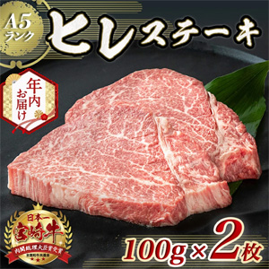 【年内お届け】宮崎牛ヒレステーキ(A5)100g×2枚≪2025年12月15日〜31日お届け≫