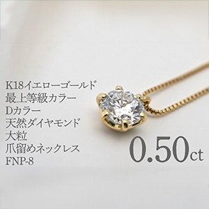 K18イエローゴールド最上等級カラーDカラー天然ダイヤモンド 大粒0.50ct爪留めネックレス FNP-8