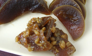 創業明治27年の老舗奈良漬店。職人ひとりひとりの手作業により、奈良漬けが出来上がるまで、二年もの歳月をかけて作る伝統のなら漬けが人気です。きざみ奈良漬けは、酒粕を丸ごと食する奈良漬け。 奈良漬け白瓜をスライスし、食べる酒粕を和えた一品です。
