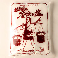 熊本県天草市・ソルトファーム 「通詞島の釜炊き塩」 限定25個 イルカに出会える島、熊本天草の通詞島。 美しい海の海水を、太陽と潮風でかん水に変え、 薪を使いトロ火で4日間釜炊きします。 にがりがほどよく含まれ、甘味とまろやかな風味があります。 200g 600円 |