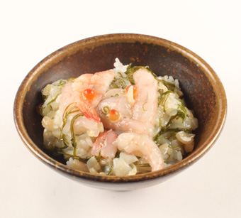 原材料:甘エビ(カナダ産)、バナメイエビ(タイ産)、めかぶ、するめいか、発酵調味料、ツブ貝、醤油、砂糖、いくら、合わせだし(かつお節、宗田かつお節、むろあじ節)、ホタテエキス、昆布、調味料(アミノ酸)