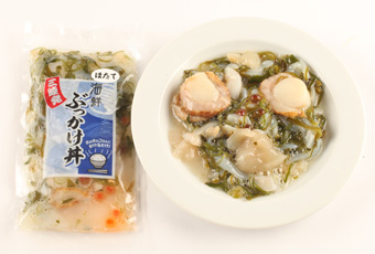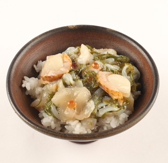 原材料:ほたて貝(北海道産・青森県産)、めかぶ、するめいか、発酵調味料、ツブ貝、醤油、砂糖、いくら、合わせだし(かつお節、宗田かつお節、むろあじ節)、ホタテエキス、昆布、調味料(アミノ酸)