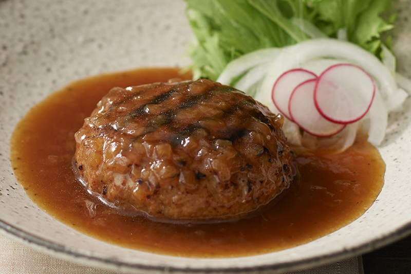 じっくり炒めた玉ねぎソースと丁寧に焼きあげたジューシーなハンバーグ。