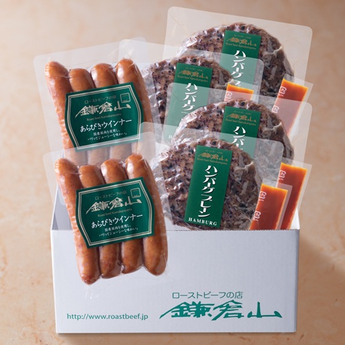 スペイン産イベリコ豚を使用した合挽ハンバーグと、ジューシーに仕上げたあらびきウィンナーをセットにしました。