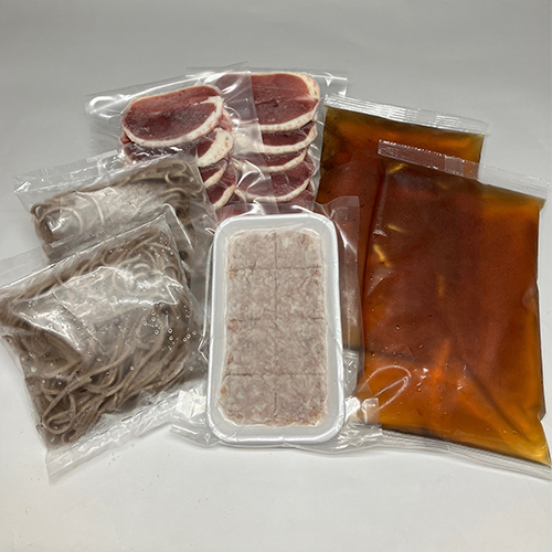 野草ミネラル熟成本鴨ロース肉100g×2、本鴨つみれ100g×1、料亭ストレートスープ600g×2、出雲そば(茹で蕎麦)130g×2