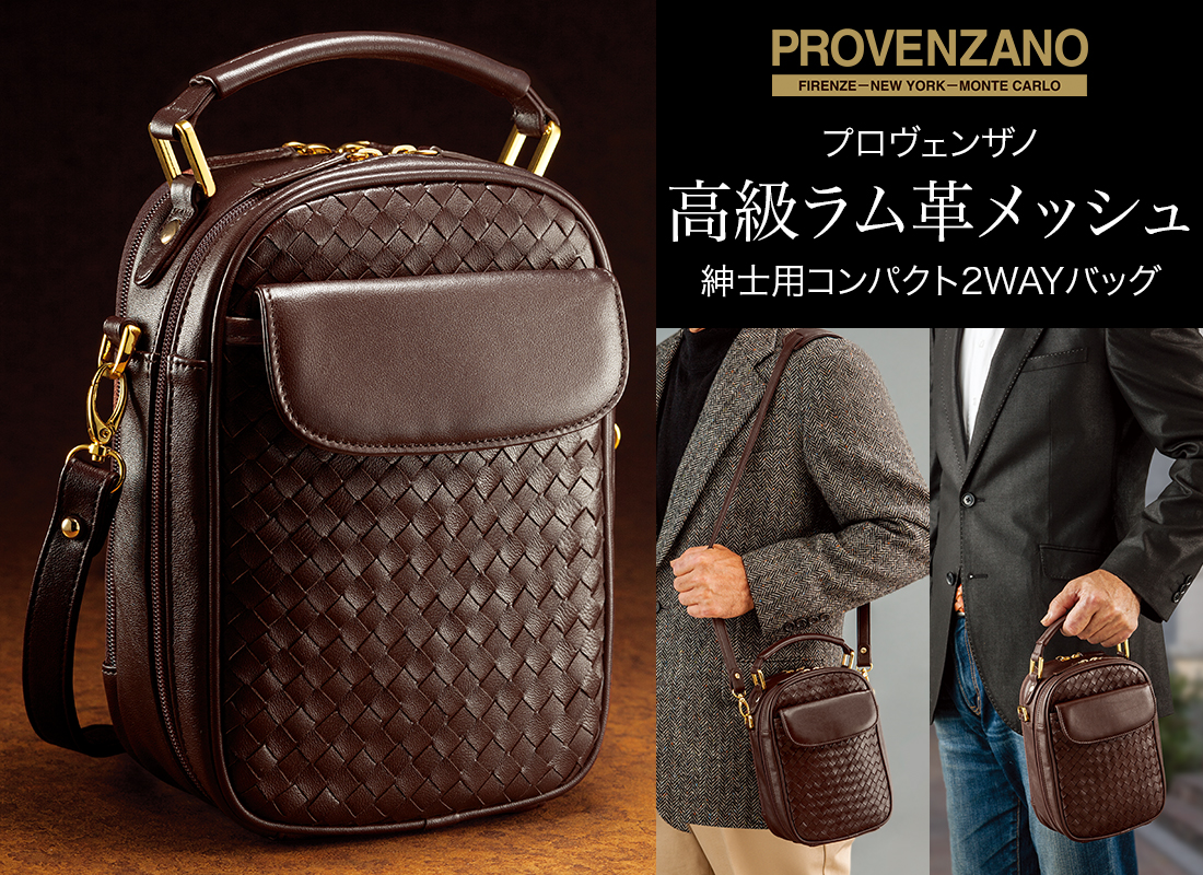 プロヴェンザノ 高級ラム革メッシュ 紳士用 コンパクト2WAYバッグ