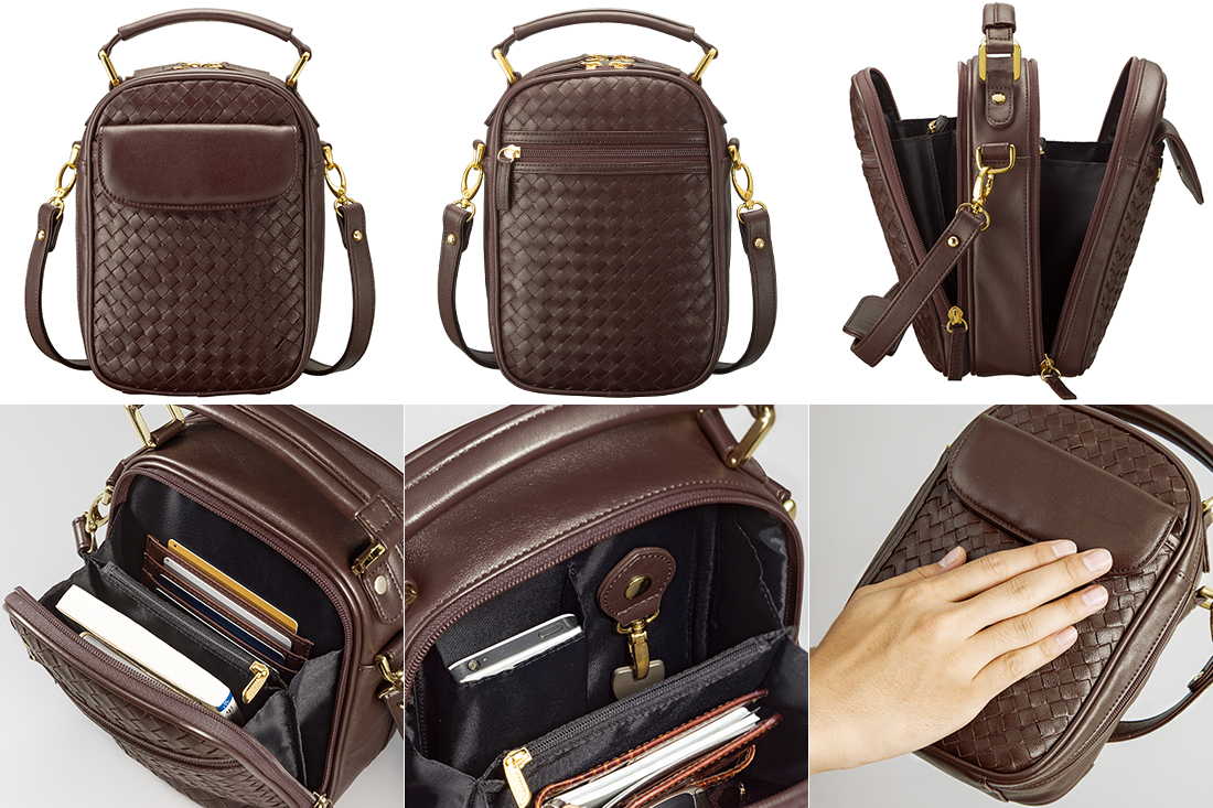仕様:4室構造、ファスナーポケット×4、オープンポケット×1、フラップ付きポケット×1、カード入れ×5、スマートフォンポケット×1、キーホルダー×1(スナップ式、取り外し可能)