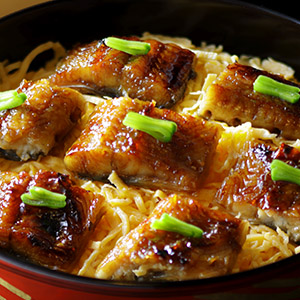 国産鰻を香ばしく白焼きにしてから、しっかりと蒸し、「京都吉兆特製たれ」で焼き上げ丼にしました。