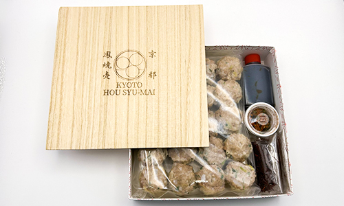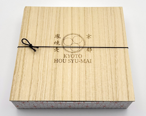 京都をイメージした和柄の箱と桐を使った蓋で上品な贈答用の焼売です。