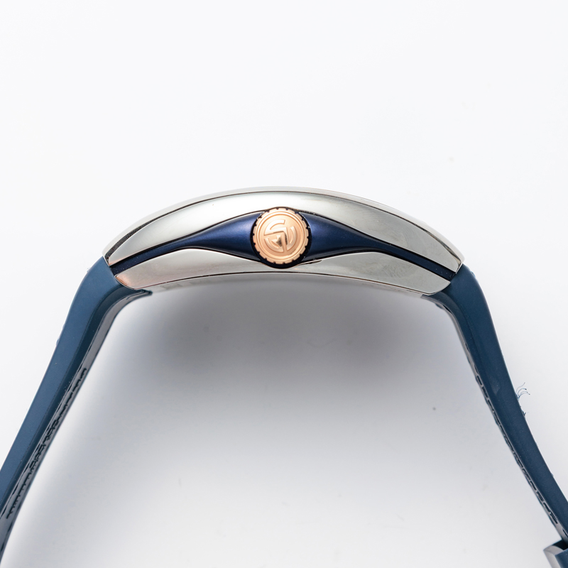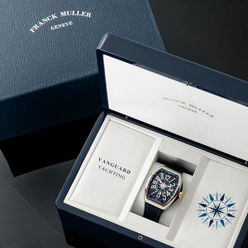 メガヨットで航海する洋上の優雅で洗練された非日常空間を彷彿とさせるスポーティモデル。文字盤には羅針盤がデザインされ、インデックスにはヴァンガードスタイルの数字が採用されています。メーカー参考価格から21%OFFのG-Call特別価格でご提供。