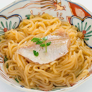 原材料:味付めん(こんにゃく粉、全脂大豆、コラーゲンペプチド/加工でんぷん、水酸化Ca、カロチン色素、酸化防止剤(V.E)) 鯛(国産) 白醤油(醤油(小麦を含む)、ぶどう糖果糖液糖、醸造酢)、魚醤((レンコダイ、かつおぶしエキス、その他/香辛料)(卵を含む))、食塩、三温糖、でんぷん/調味料(アミノ酸等)