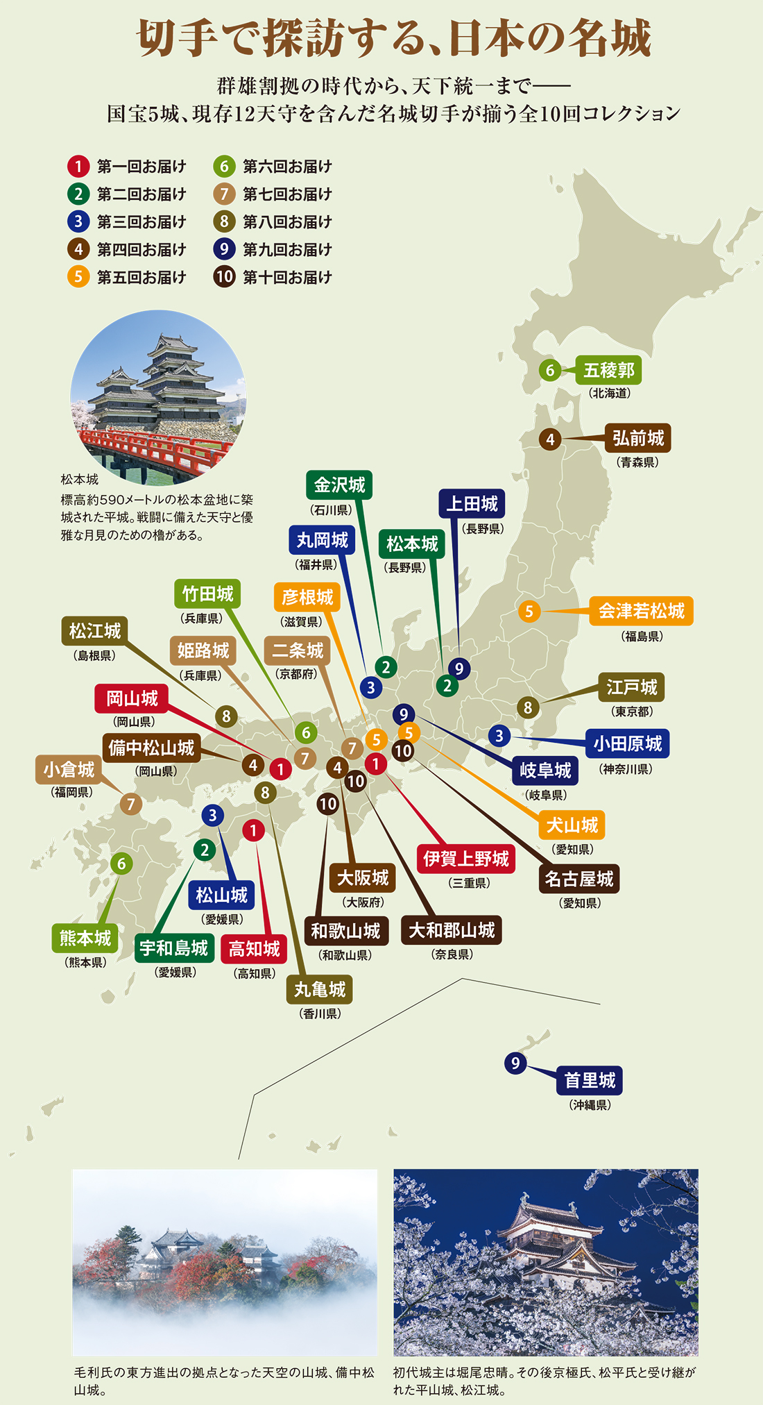 毎月カード3点(3城)ずつ、10回にわたってお届けします。