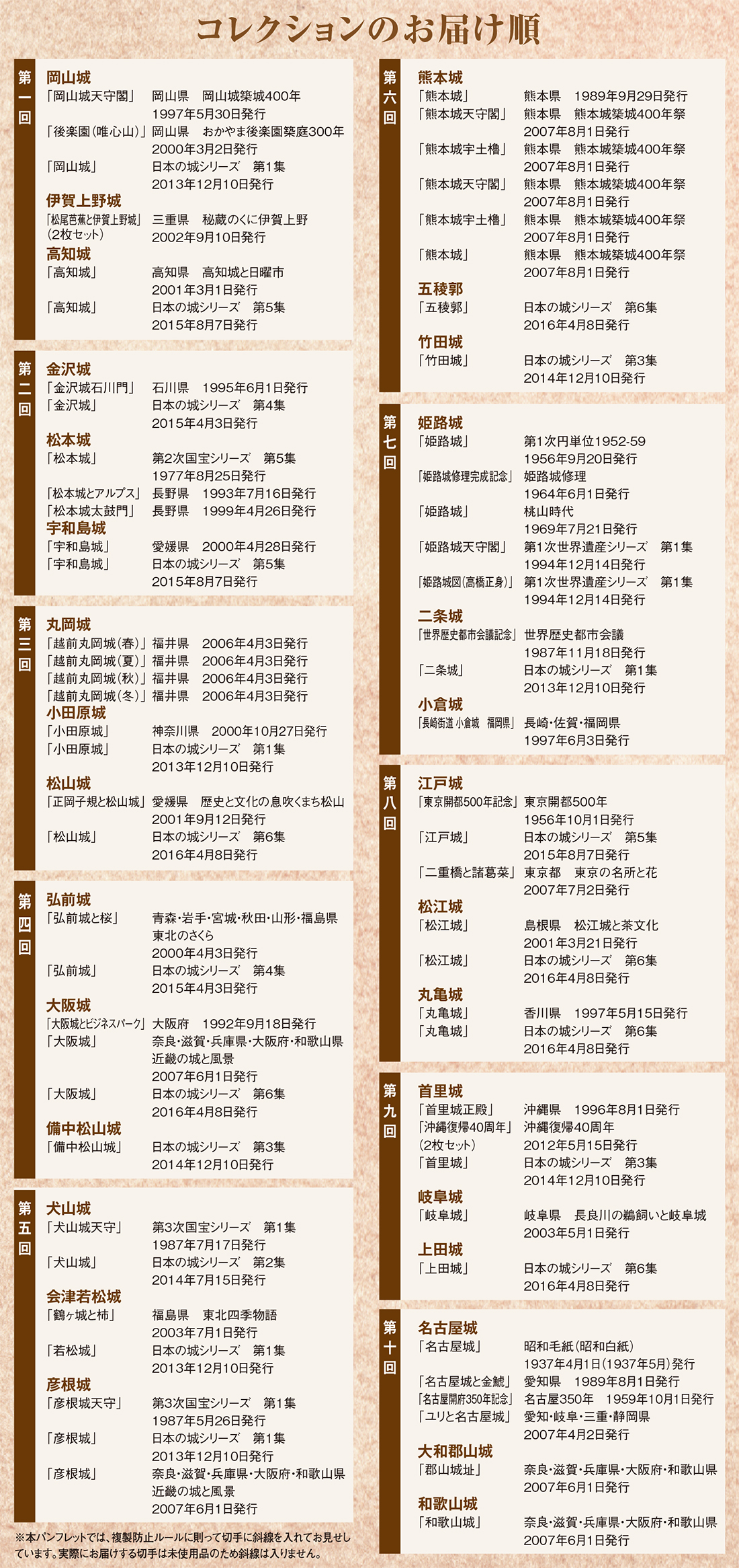 ■毎月カード3点(3城)ずつ、10回にわたってお届け