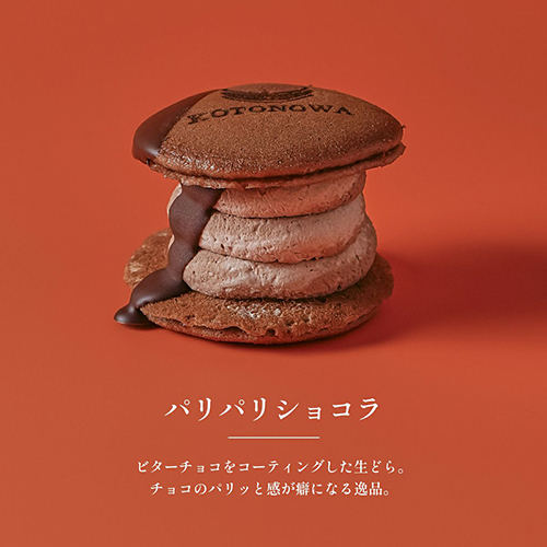 チョコクリームの上から少しビターなチョコレートでどら焼きの皮ごとコーティング。