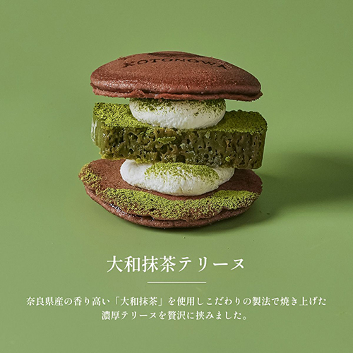 奈良県産の香り高い「大和抹茶」を使用しこだわりの製法で焼き上げた濃厚テリーヌ×もちもち生地×甘過ぎない生クリームが絶妙なハーモニー。