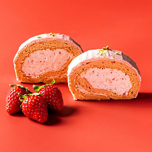 しっとりと焼き上げたいちご生地の中はいちごクリームと古都華苺のコンフィチュールを贅沢に使用しました。