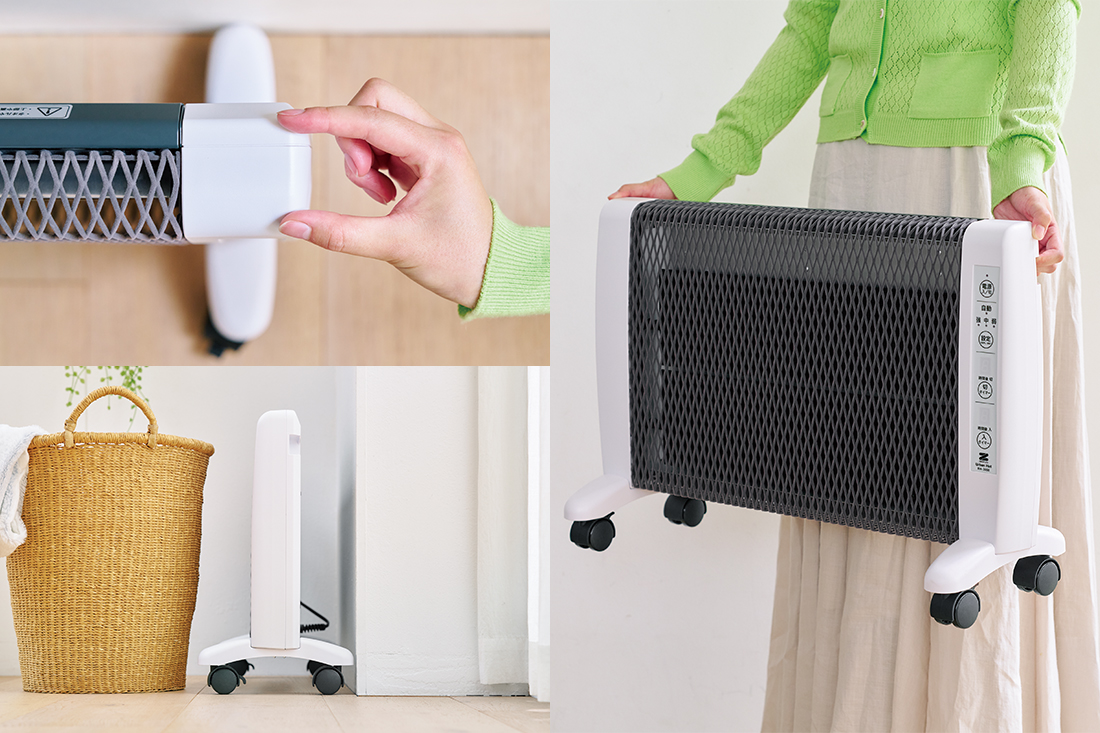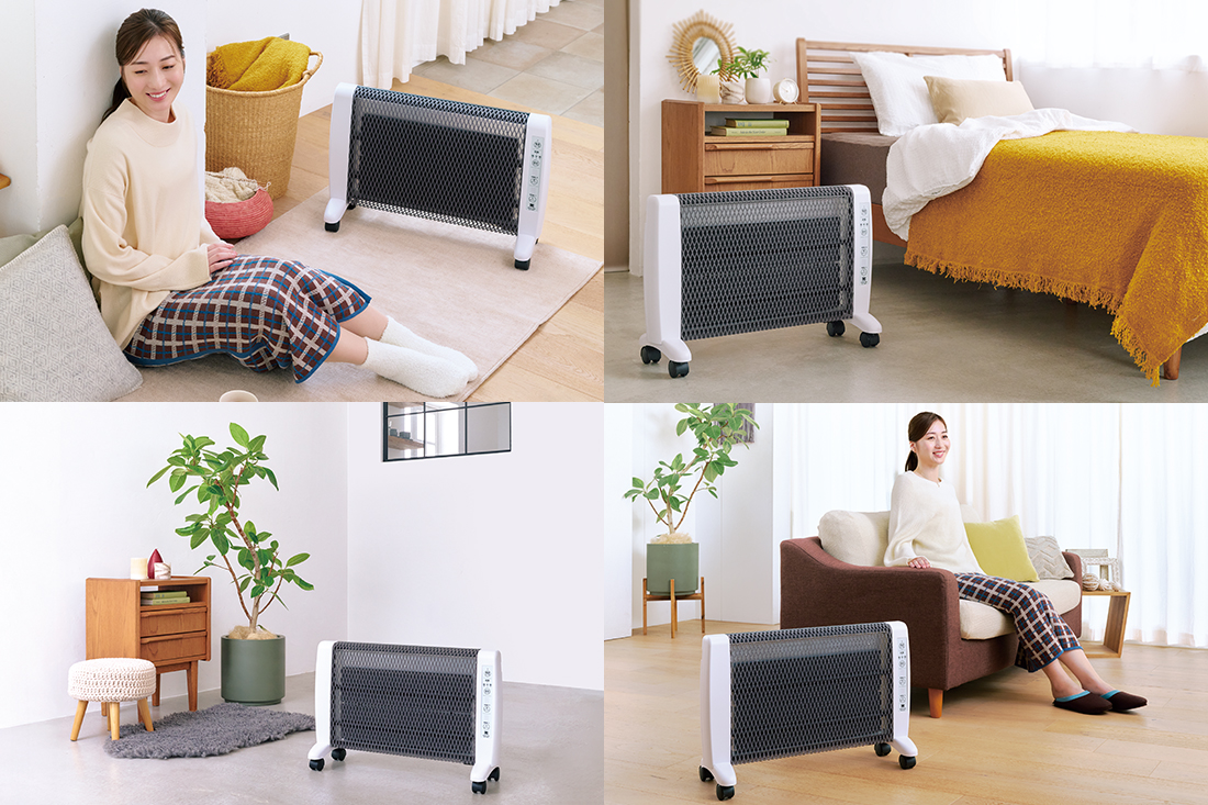 ・遠赤外線の効果で身体をやさしく暖めるヒーター。輻射効果でひだまりのような暖かさが得られます。