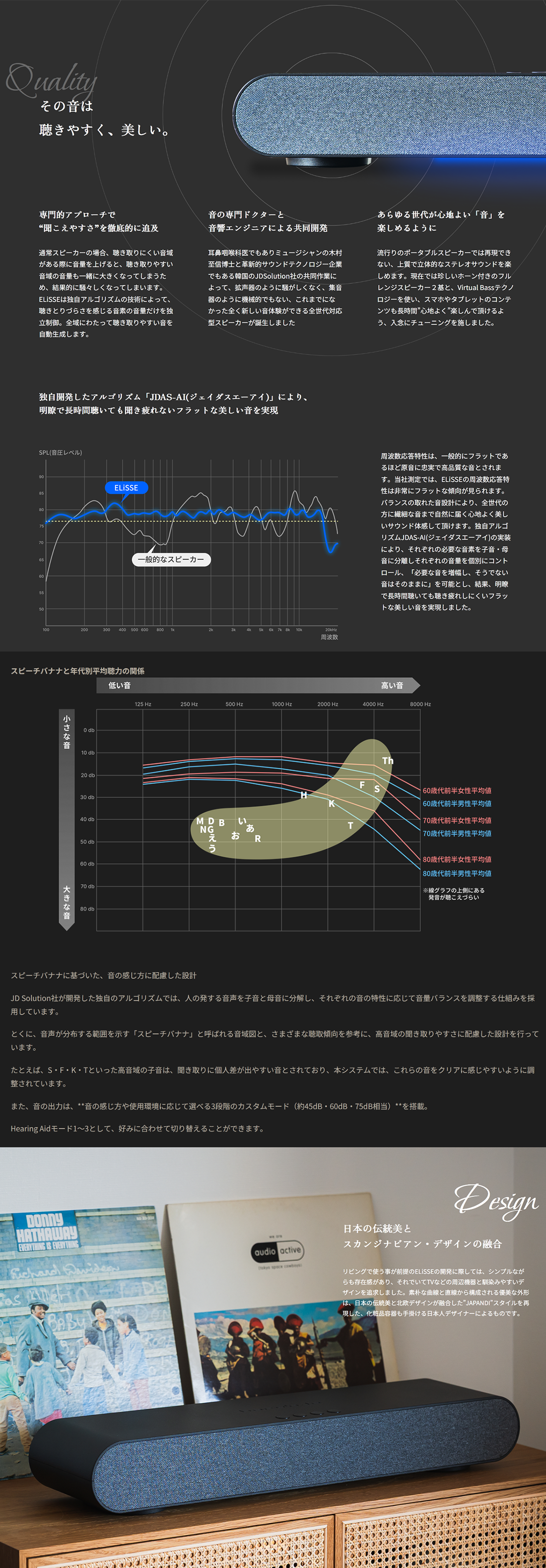 年齢と共に”聴こえ方”に変化を感じ始めたら、是非お勧めしたいのがこの多世代スピーカー”エリッセ”です。