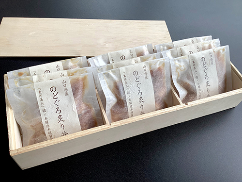 脂ののった「のどぐろ」(アカムツ)の皮目を炙り、香ばしさとふわっとろな身を、日本の匠の技で造られた選りすぐりの調味料で合わせた「醤油糀」のタレに漬けております。