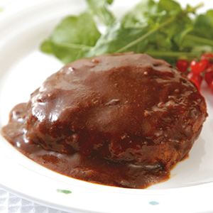 [ハンバーグ]牛肉(滋賀県産)、玉葱(国産)、つなぎ(卵白(国産)、パン粉、粉末状植物性たん白)、牛脂、りんごパルプ、乳加工品、食塩、砂糖、香辛料/酸味料、香料、カロチノイド色素、(一部に乳成分・小麦・卵・大豆・牛肉・りんごを含む)