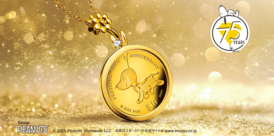 その軌跡を刻む、スヌーピーの貴重な記念金貨がペンダントになりました。