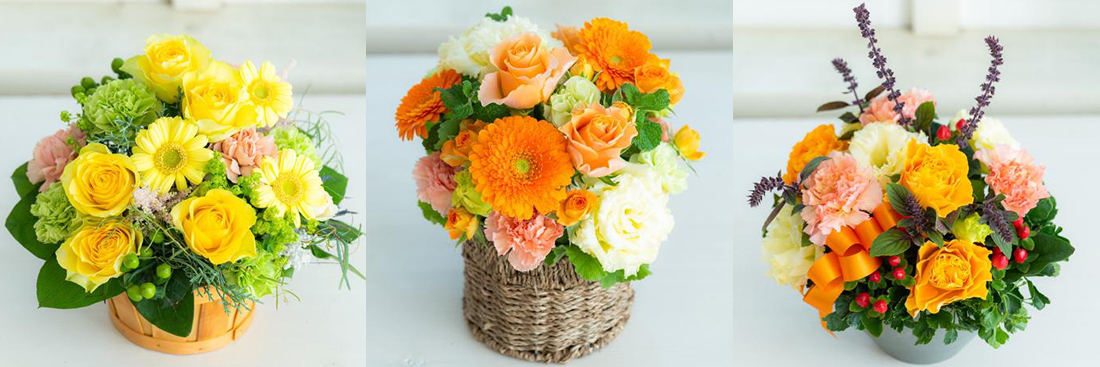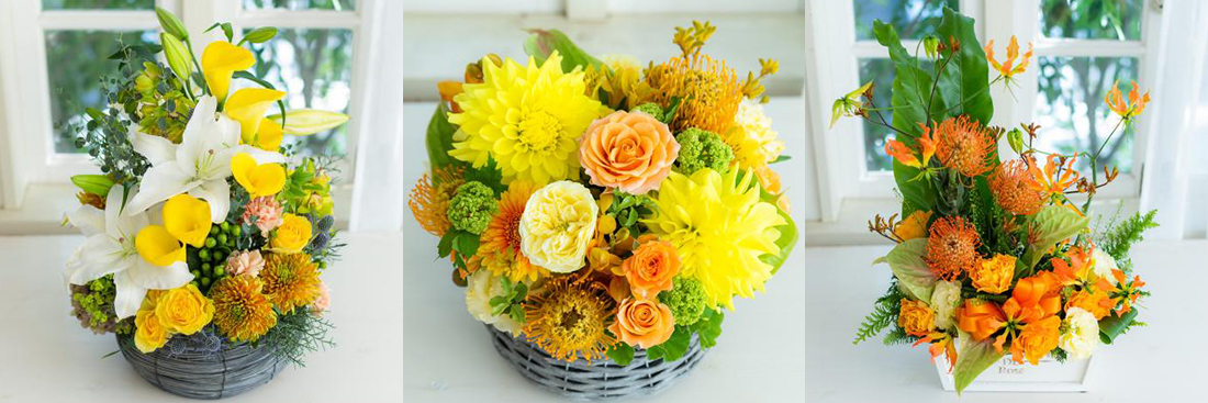 黄色・オレンジ系でまとめたアレンジメントです。