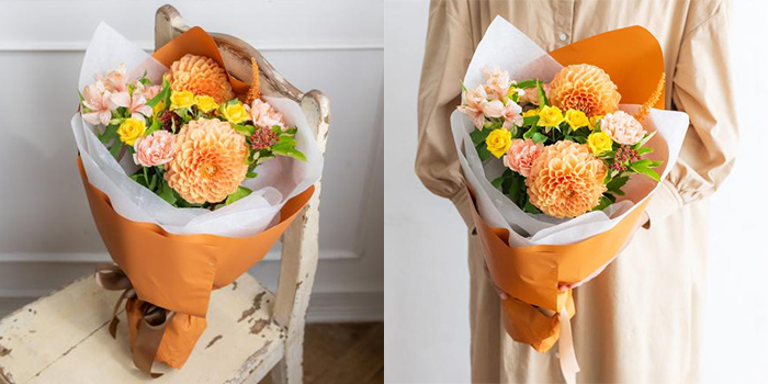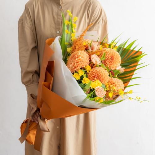 黄色・オレンジ系でまとめたおまかせブーケです。