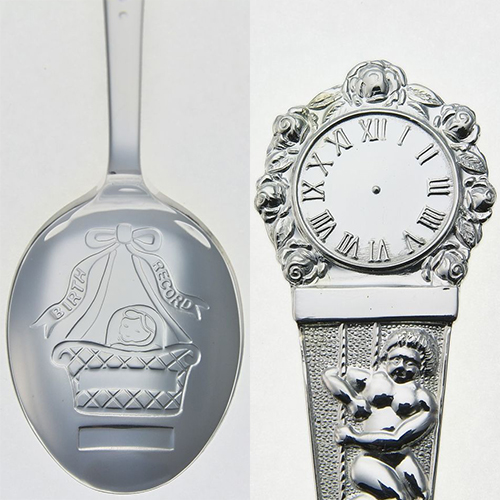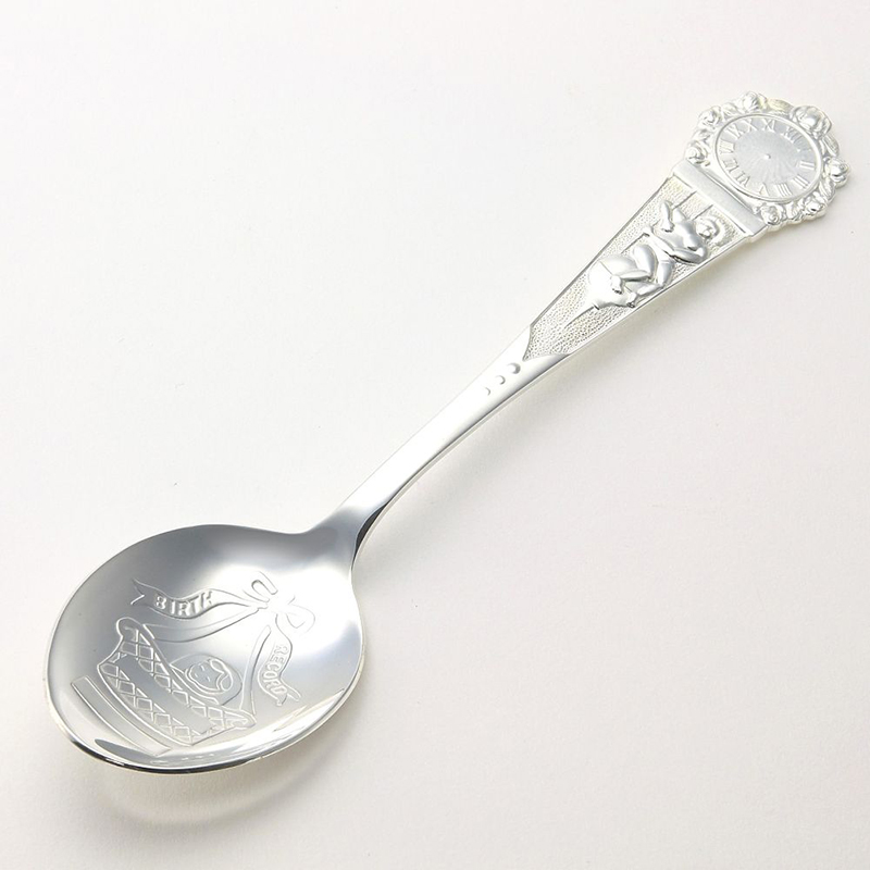 お子様のお誕生の記録を彫り込んだこのスプーンは、世界でひとつだけの記念の品。