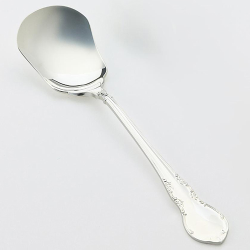 固いアイスクリームもすぐ美味しく召し上がれるよう、熱伝導率の良い銀の特性を生かし、持ち手から先端までの長さや厚み、形状まで、とことんこだわって作った究極のアイスクリームスプーンです。