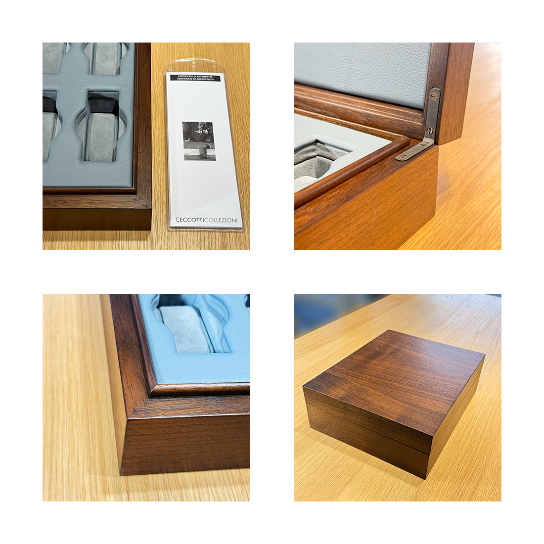イタリア・トスカーナで誕生したチェコッティ・コレツィオーニの逸品。張地や、金属部分の継ぎ目の細部に至るまでラグジュアリーなクラフツマンシップが感じられる精巧な造りをご堪能いただけます。木材、皮革、金属、全ての原材料の品質・特徴を十二分に活かした、生活の中にデザインの卓越性と物語をもたらしてくれるアイテムです。
