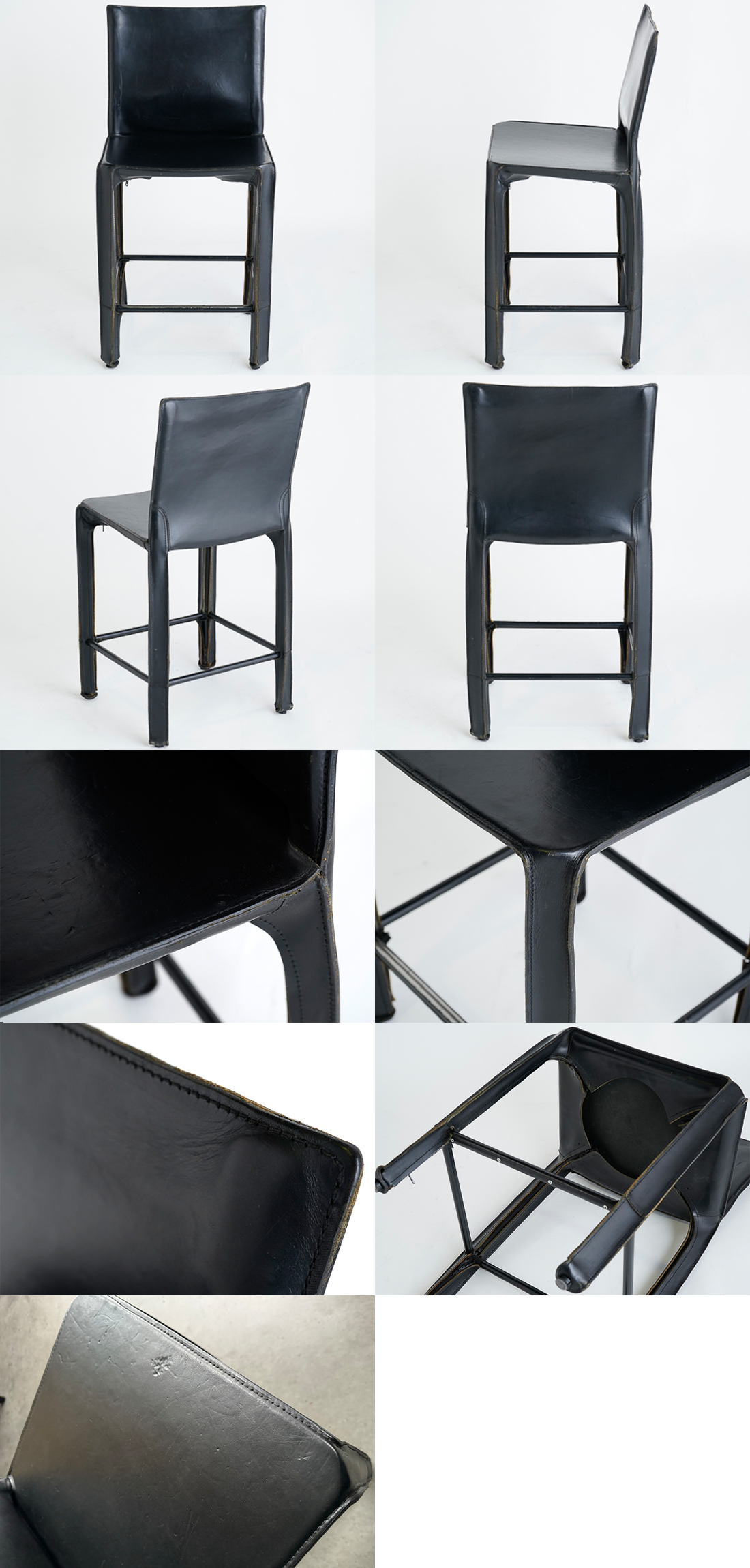マリオ・ベッリーニのデザインによるCABは、世界的なロングセラーの名作として多くの賛美を得ていますが、このハイチェアモデルは流通量も少なく、最高級ホテルの「特注仕様」となれば、単なる中古チェアの枠を超えた希少なヘリテージ(遺産)コレクションとしての価値が極めて高くなります。非売品の特注モデルで座面裏にロゴがついていないのは、一般の市場に出ることのない希少のプロ仕様の証と言えるでしょう。