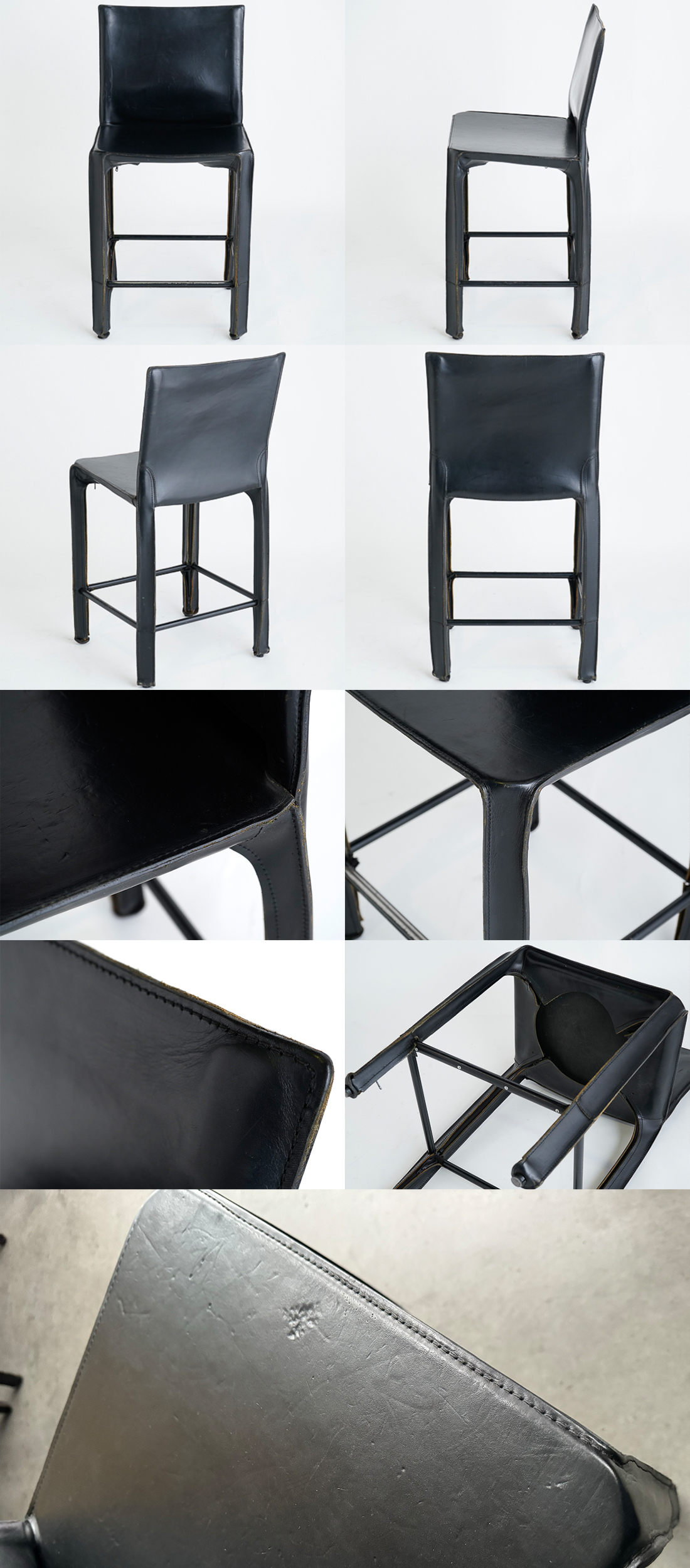 マリオ・ベッリーニのデザインによるCABは、世界的なロングセラーの名作として多くの賛美を得ていますが、このハイチェアモデルは流通量も少なく、最高級ホテルの「特注仕様」となれば、単なる中古チェアの枠を超えた希少なヘリテージ(遺産)コレクションとしての価値が極めて高くなります。非売品の特注モデルで座面裏にロゴがついていないのは、一般の市場に出ることのない希少のプロ仕様の証と言えるでしょう。