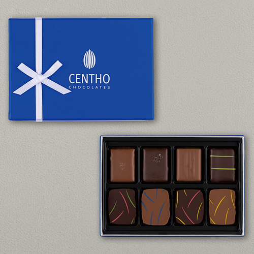 それぞれのカカオと相性のよいフルーツジャムとのペアリングを楽しめる「フラゴラ」「ブラックベリー」「アプリコット」「パッションフルーツ」の3層仕立ての4粒と、代表粒の「塩キャラメル」はもちろん、塩キャラメルチョコレートとピスタチオプラリネを二層にした2026年の新粒「ピスタルダ」など個性豊かなキャラメルチョコレート4粒をアソートしました。カカオの味を引き立たせるこだわりのガナッシュと、セントー自慢のキャラメルチョコレートの両方を堪能できるセレクションです。