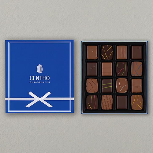 2013年インターナショナルチョコレートアワード金賞受賞のセントー代表粒「塩キャラメル」はもちろん、個性豊かなキャラメルチョコレート、フルーツジャムとのペアリングを楽しめる”こだわりの3層仕立て”のガナッシュ、ナッツの風味豊かなプラリネ、セントーのチョコレートを存分にご堪能いただける16フレーバーをアソートしました。