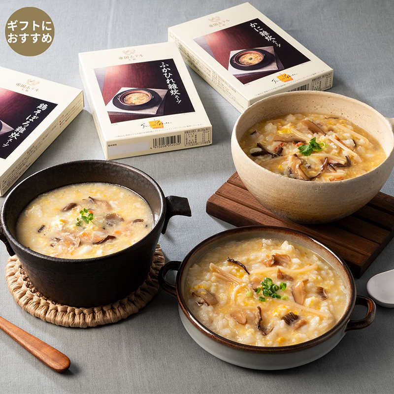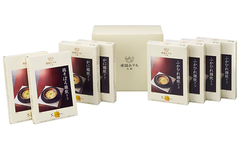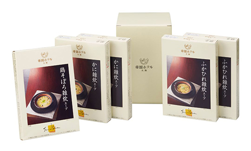 帝国ホテル 大阪のレストラン中国料理「ジャスミンガーデン」が監修した雑炊スープの詰め合わせです。
