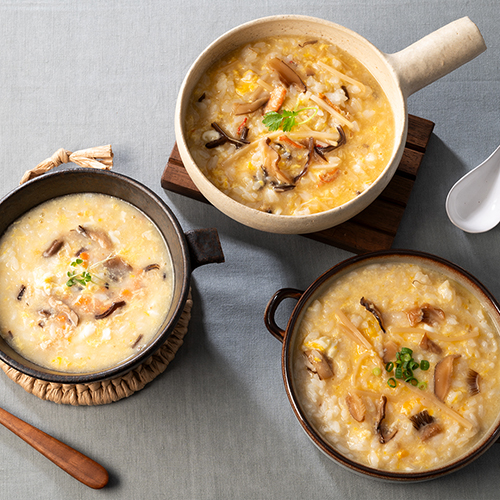 ごはんと卵を用意すれば優しい味わいの雑炊を簡単におつくりいただけます。雑炊らしいサラッとした口当たりを追求するため、あえてご飯と卵を加えるひと手間にこだわりました。優しい味わいが人気の雑炊スープ詰合せです。