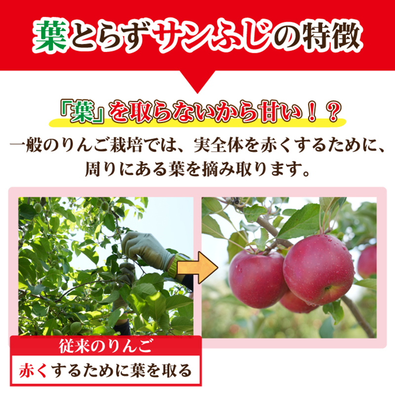 こだわりの黄金比率ブレンド:葉とらずサンふじ 70%・葉とらず紅玉 20%・(葉とらず)シナノゴールド 10%