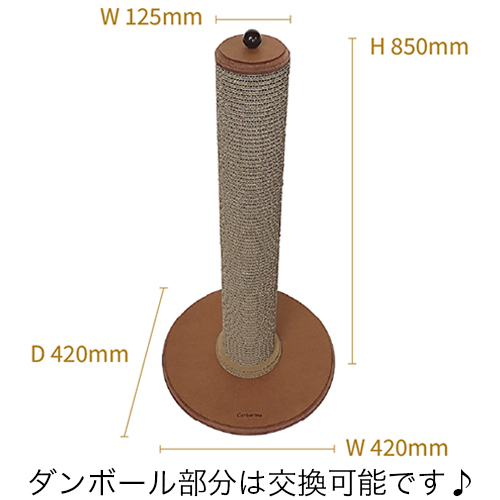 もちろん、爪とぎ部分は超強化段ボールを使用。通常の段ボールの約10倍の強さ(当社比)だからカスが出にくく、お掃除も簡単。長くお使いいただけるから、安価な爪とぎを頻繁に購入するよりも経済的です。爪とぎ部分がへたったら、リフィル交換も可能です。