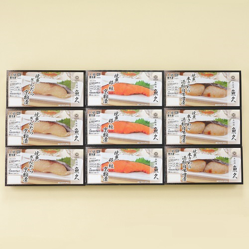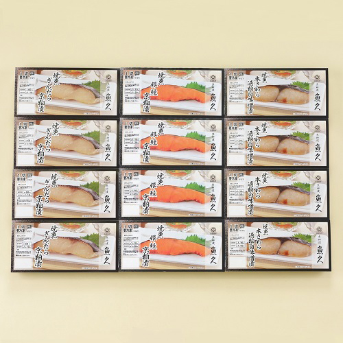 粕床で漬け上げた切り身をじっくり焼き上げ、瞬間冷凍でパックした商品の詰合わせです。
