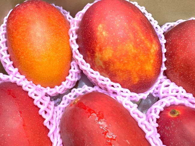 宮崎マンゴ−は全体的に真っ赤というイメージがございますが、実は産地の選別で色むらなどのあるマンゴーも出荷されています。そこで、一般では見かけない規格外の訳ありマンゴーを特別にご用意させていただきました。