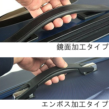 スーツケースは主に「鏡面加工」と「エンボス加工」の2種類があります。