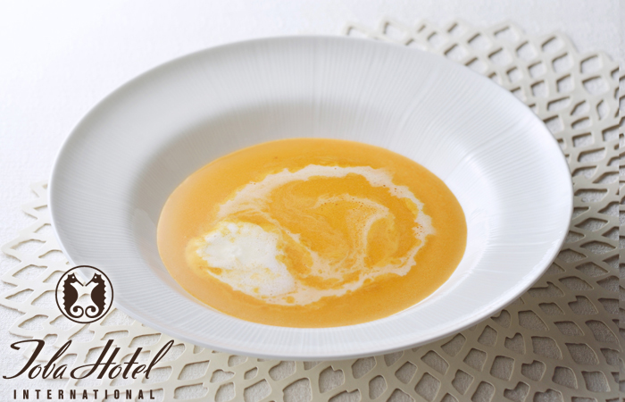濃厚な味わいが特徴のホテル自慢のビスクスープをお愉しみください。
