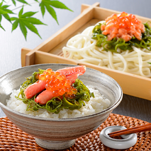 内容量:ボイル紅ズワイガニ(姿)380g、助宗鱈切身40g×3切、するめいかカット100g、かに入りつみれ3個、えび入りつみれ3個、とりごぼうつみれ3個、うどん250g、えび魚醤油入たれ50ml×2袋