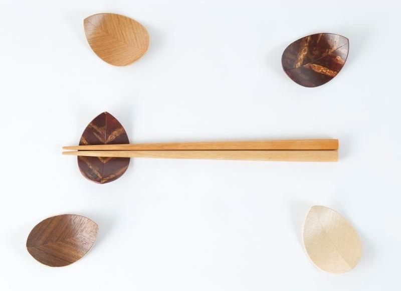 樺細工の素材と技法を用いてできた、葉の形をした箸置きです。