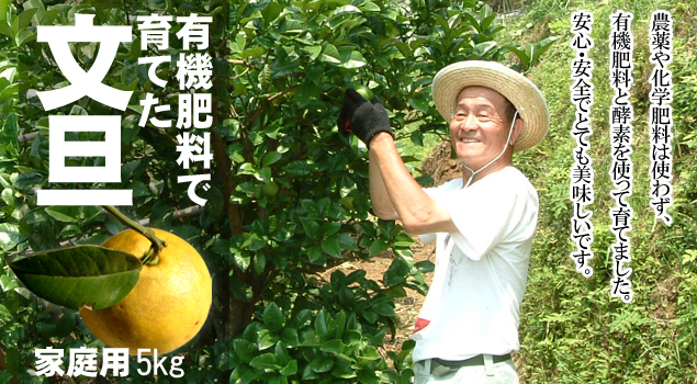 農薬や化学肥料を使わず、有機肥料と酵素を使って育てた「安心・安全の文旦」です。