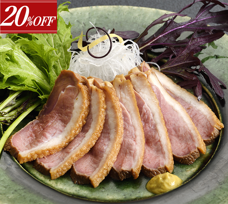 国産の合鴨肉を低温でじっくりと仕上げた料亭の味をお楽しみいただけます。合鴨は、豊かな風味と柔らかい肉質が特徴です。低温調理によって、肉の旨みが閉じ込められ、ジューシーで脂ののった食感を楽しむことができます。