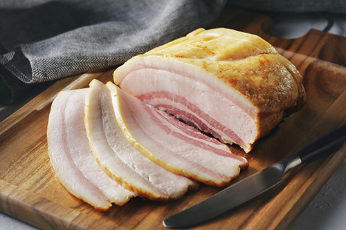 お好みの厚みにスライスして、そのままお召し上がりください。さっと炙ると、香ばしい味わいをお楽しみいただけます。